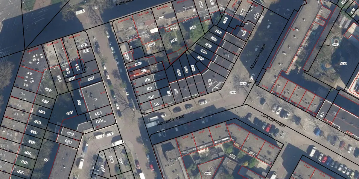 Abcoudestraat 57 is gelegen op kadastraal perceel CLS00G3598. Deze kadastrale aanduiding is uniek en wordt gebruikt door het Kadaster om eigendomsrechten en andere zakelijke rechten vast te leggen. Het perceel maakt onderdeel uit van de kadastrale gemeente Charlois.