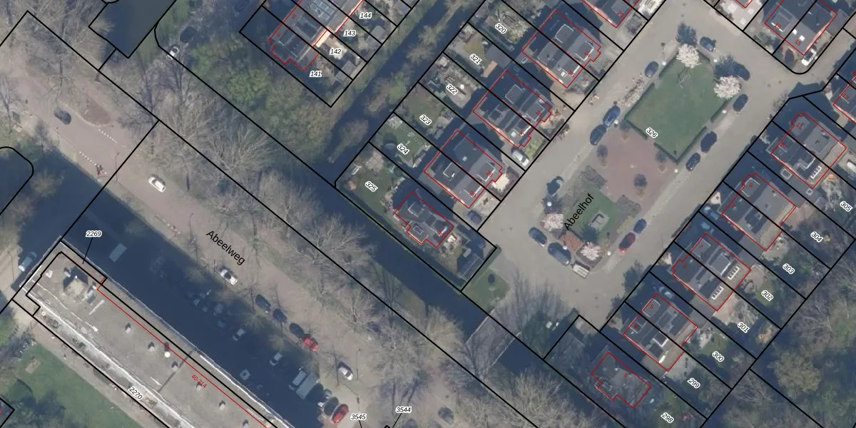 Gebruik de zoekbalk of klik op een perceel voor informatie over de adressen binnen dit perceel.