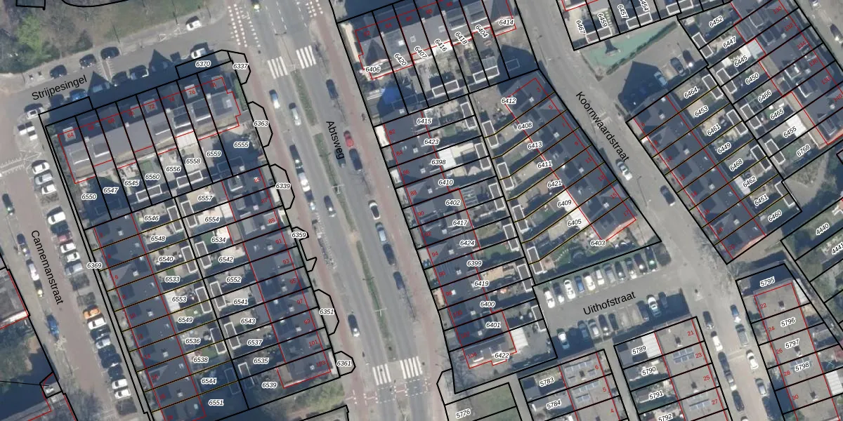 Abtsweg 90 is gelegen op kadastraal perceel OVS00C6402. Deze kadastrale aanduiding is uniek en wordt gebruikt door het Kadaster om eigendomsrechten en andere zakelijke rechten vast te leggen. Het perceel maakt onderdeel uit van de kadastrale gemeente Overschie.