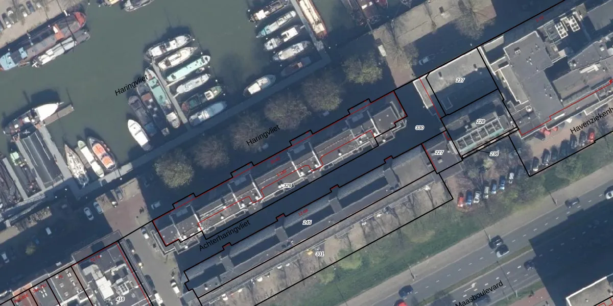 Achterharingvliet 145 is gelegen op kadastraal perceel RTD04AH329. Deze kadastrale aanduiding is uniek en wordt gebruikt door het Kadaster om eigendomsrechten en andere zakelijke rechten vast te leggen. Het perceel maakt onderdeel uit van de kadastrale gemeente Rotterdam.