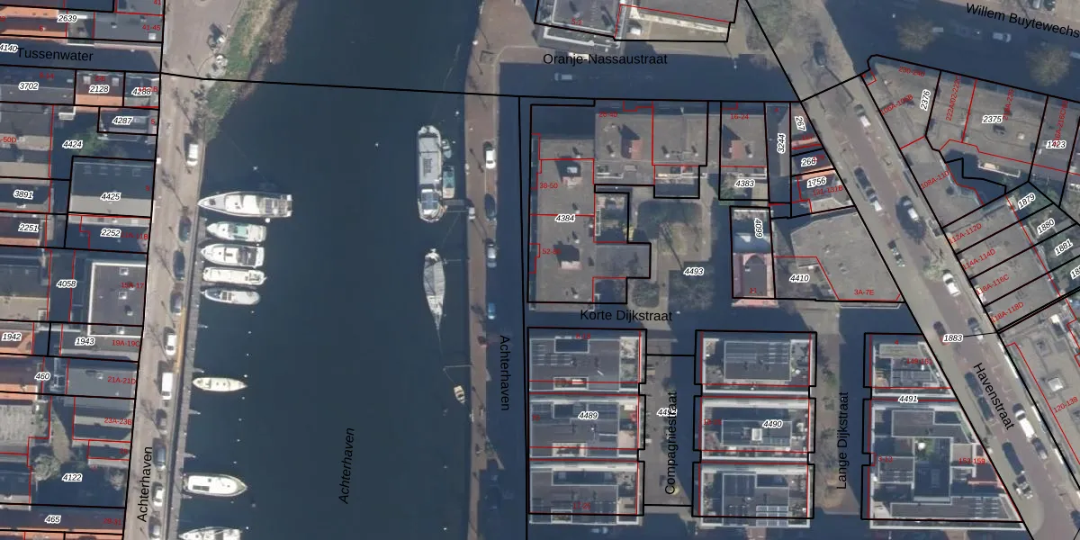 Het perceel waarop Achterhaven 56 staat heeft een oppervlakte van 920 m². Dit is een groot perceel. De perceeloppervlakte wordt geregistreerd door het Kadaster. Gedetailleerde informatie over de maten van dit perceel kunt u vinden in het rapport Kadastrale kaart met maatvoering van Achterhaven 56.