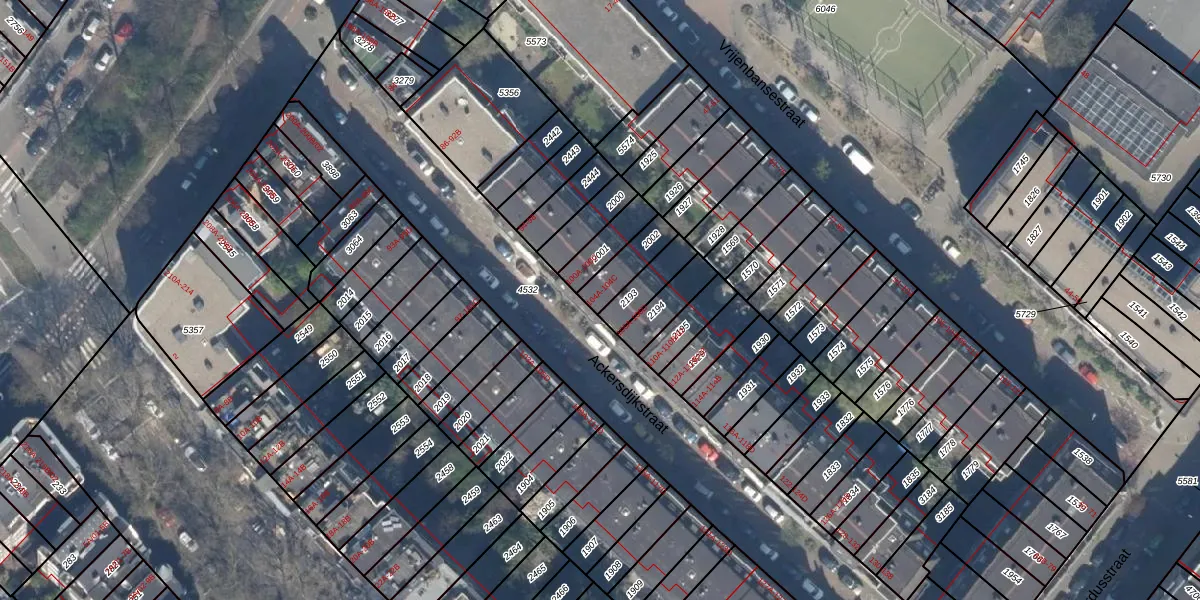 Het perceel waarop Ackersdijkstraat 104-A staat heeft een oppervlakte van 91 m². Dit is een klein perceel. De perceeloppervlakte wordt geregistreerd door het Kadaster. Gedetailleerde informatie over de maten van dit perceel kunt u vinden in het rapport Kadastrale kaart met maatvoering van Ackersdijkstraat 104-A.