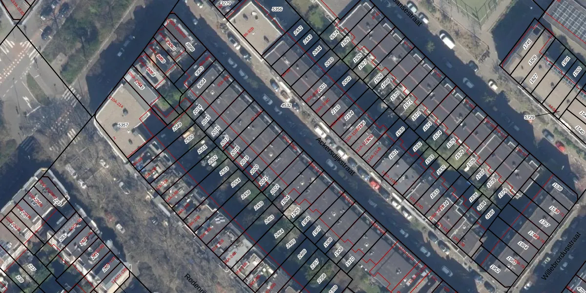 Het adres ligt op het perceel RTD09-Y-2021, dat zich in de kadastrale gemeente Rotterdam bevindt. Het perceel is kleiner dan gemiddeld in Rotterdam. Het perceel is 96 m² groot, terwijl het gemiddelde ligt op 444,73 m². Het kleinste perceel in de kadastrale gemeente is 0 m² groot. De grootste perceeloppervlakte is 7,0 ha. Er zijn 8 adressen aanwezig op het perceel. De huidige grenzen van het perceel zijn digitaal in de Basisregistratie Kadaster (BRK) geregistreerd op 31-12-2002.