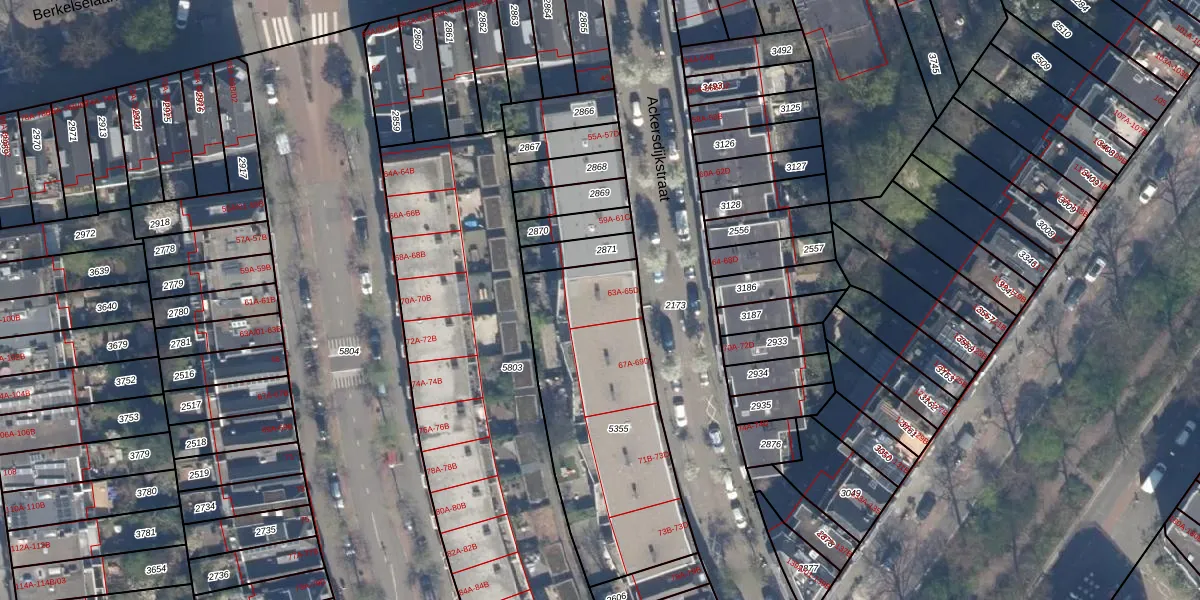 Het perceel waarop Ackersdijkstraat 65-D staat heeft een oppervlakte van 990 m². Dit is een groot perceel. De perceeloppervlakte wordt geregistreerd door het Kadaster. Gedetailleerde informatie over de maten van dit perceel kunt u vinden in het rapport Kadastrale kaart met maatvoering van Ackersdijkstraat 65-D.
