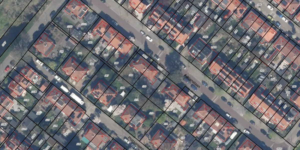 Gebruik de zoekbalk of klik op een perceel voor informatie over de adressen binnen dit perceel.