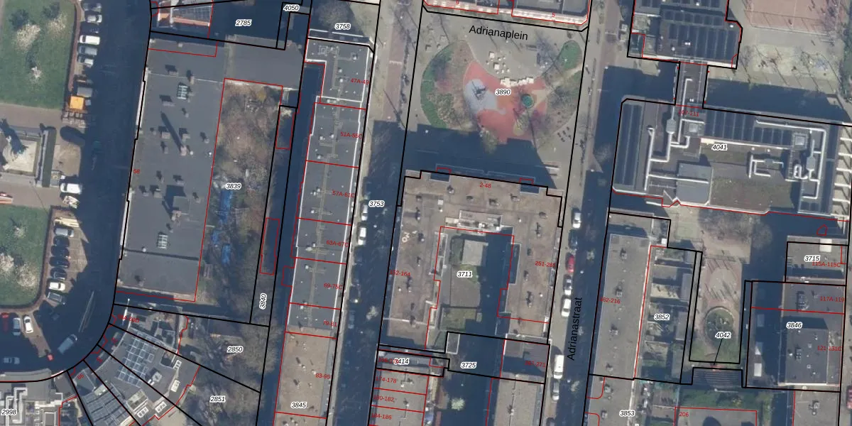Adrianaplein 40 is gelegen op kadastraal perceel DHV00D3711. Deze kadastrale aanduiding is uniek en wordt gebruikt door het Kadaster om eigendomsrechten en andere zakelijke rechten vast te leggen. Het perceel maakt onderdeel uit van de kadastrale gemeente Delfshaven.