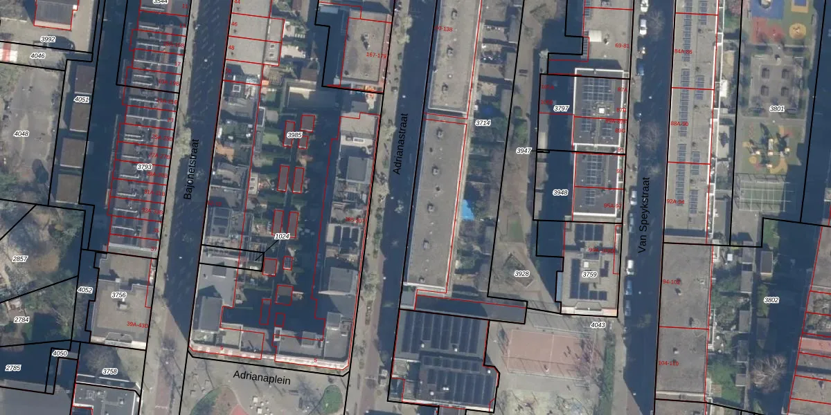 Het perceel waarop Adrianastraat 130 staat heeft een oppervlakte van 2915 m². Dit is een zeer groot perceel. De perceeloppervlakte wordt geregistreerd door het Kadaster. Gedetailleerde informatie over de maten van dit perceel kunt u vinden in het rapport Kadastrale kaart met maatvoering van Adrianastraat 130.