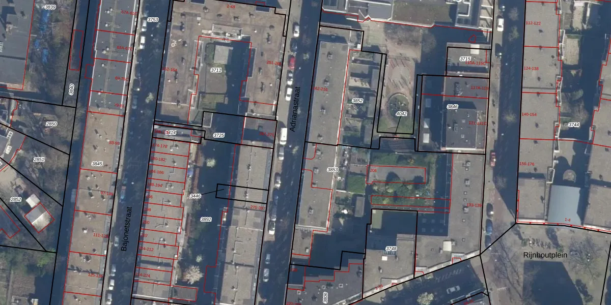 Adrianastraat 204 is gelegen op kadastraal perceel DHV00D3853. Deze kadastrale aanduiding is uniek en wordt gebruikt door het Kadaster om eigendomsrechten en andere zakelijke rechten vast te leggen. Het perceel maakt onderdeel uit van de kadastrale gemeente Delfshaven.