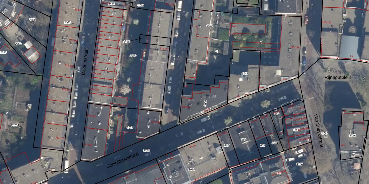 Het adres ligt op het perceel DHV00-D-3806, dat zich in de kadastrale gemeente Delfshaven bevindt. Het perceel is 428 m² groot. Dat is kleiner dan de gemiddelde perceeloppervlakte in Delfshaven, dat op 628,53 m² ligt. De grootste perceeloppervlakte in de kadastrale gemeente is 22,2 ha. De kleinste oppervlakte bedraagt 0 m². Er zijn 18 adressen aanwezig op het perceel. De laatste wijziging in het de Basisregistratie Kadaster (BRK) was op 12-03-2003.