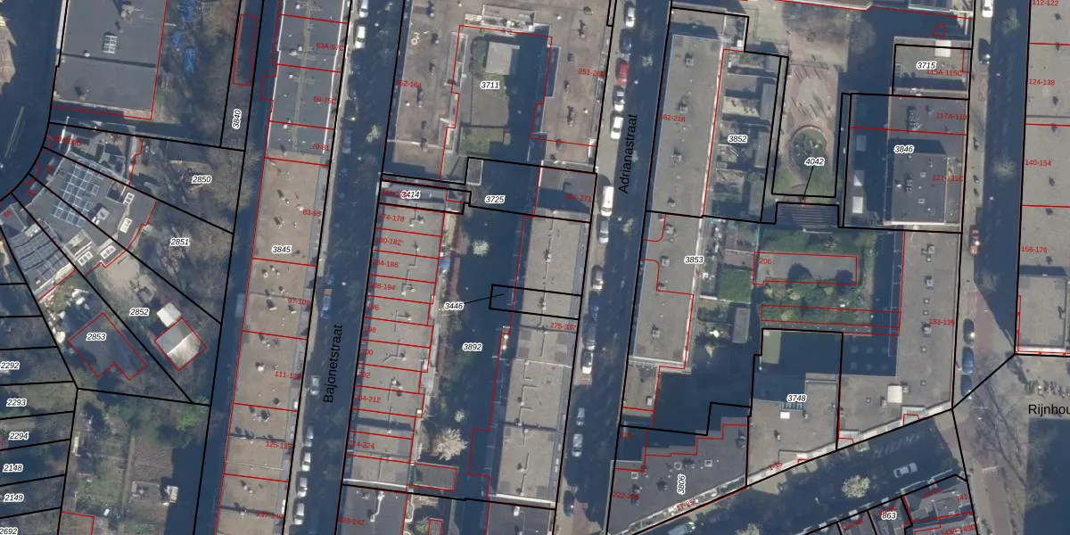 Adrianastraat 277 is gelegen op kadastraal perceel DHV00D3892. Deze kadastrale aanduiding is uniek en wordt gebruikt door het Kadaster om eigendomsrechten en andere zakelijke rechten vast te leggen. Het perceel maakt onderdeel uit van de kadastrale gemeente Delfshaven.