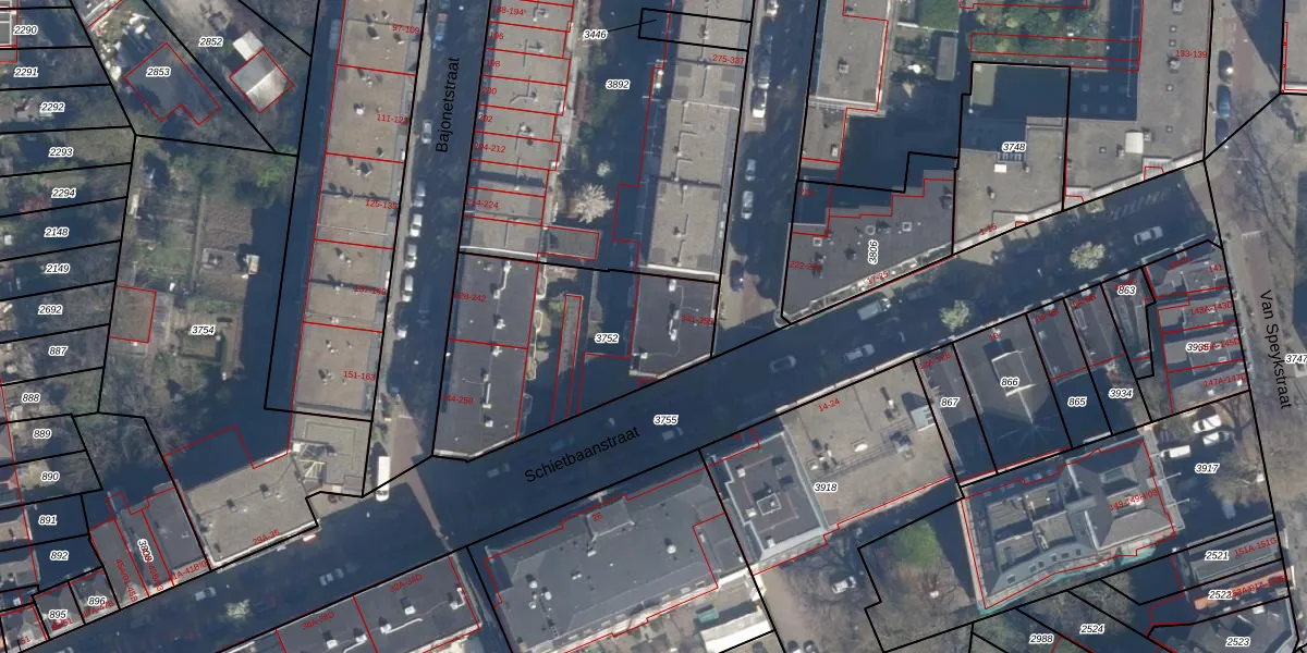Het perceel waarop Adrianastraat 349 staat heeft een oppervlakte van 925 m². Dit is een groot perceel. De perceeloppervlakte wordt geregistreerd door het Kadaster. Gedetailleerde informatie over de maten van dit perceel kunt u vinden in het rapport Kadastrale kaart met maatvoering van Adrianastraat 349.