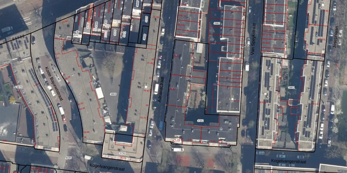 Het perceel waarop Adrianastraat 52 staat heeft een oppervlakte van 1640 m². Dit is een zeer groot perceel. De perceeloppervlakte wordt geregistreerd door het Kadaster. Gedetailleerde informatie over de maten van dit perceel kunt u vinden in het rapport Kadastrale kaart met maatvoering van Adrianastraat 52.