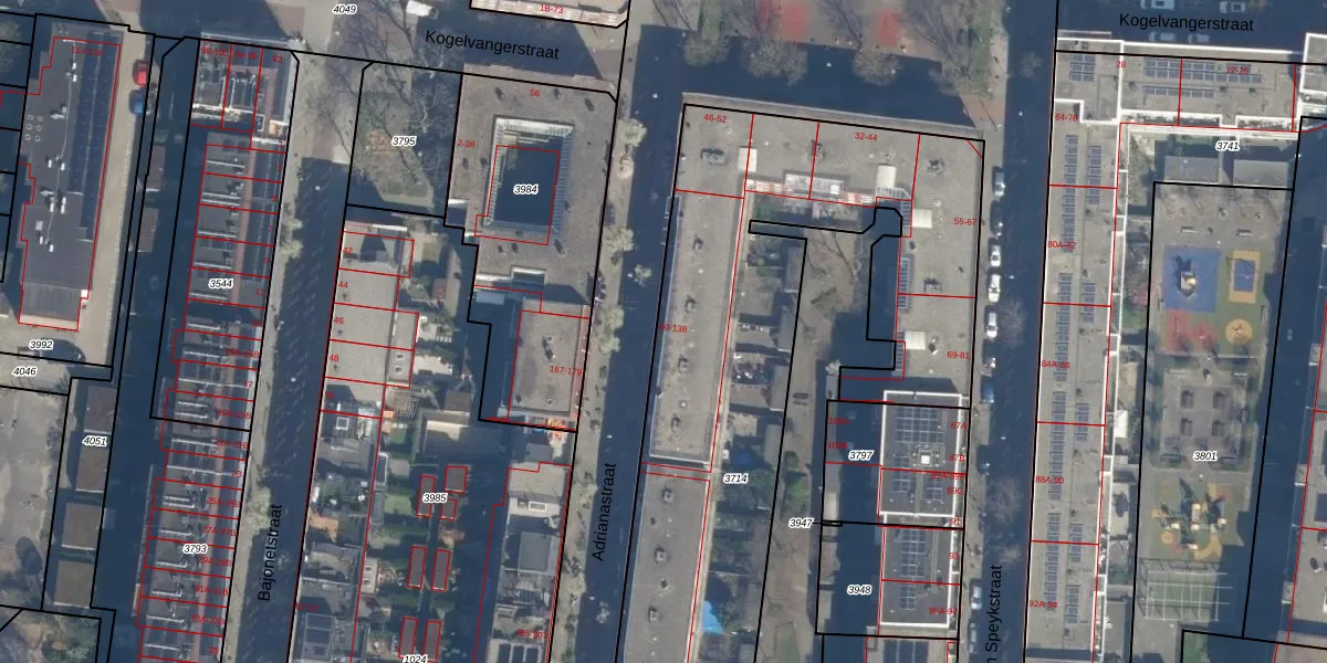 Het perceel waarop Adrianastraat 78 staat heeft een oppervlakte van 2915 m². Dit is een zeer groot perceel. De perceeloppervlakte wordt geregistreerd door het Kadaster. Gedetailleerde informatie over de maten van dit perceel kunt u vinden in het rapport Kadastrale kaart met maatvoering van Adrianastraat 78.