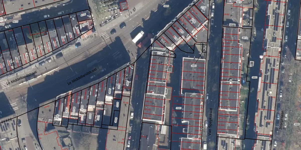 Het perceel waarop Adrianastraat 8-B staat heeft een oppervlakte van 2781 m². Dit is een zeer groot perceel. De perceeloppervlakte wordt geregistreerd door het Kadaster. Gedetailleerde informatie over de maten van dit perceel kunt u vinden in het rapport Kadastrale kaart met maatvoering van Adrianastraat 8-B.