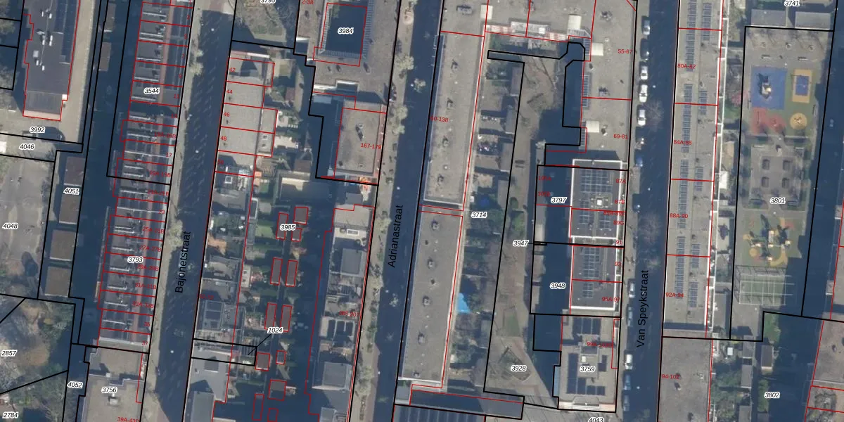 Adrianastraat 88 is gelegen op kadastraal perceel DHV00D3714. Deze kadastrale aanduiding is uniek en wordt gebruikt door het Kadaster om eigendomsrechten en andere zakelijke rechten vast te leggen. Het perceel maakt onderdeel uit van de kadastrale gemeente Delfshaven.