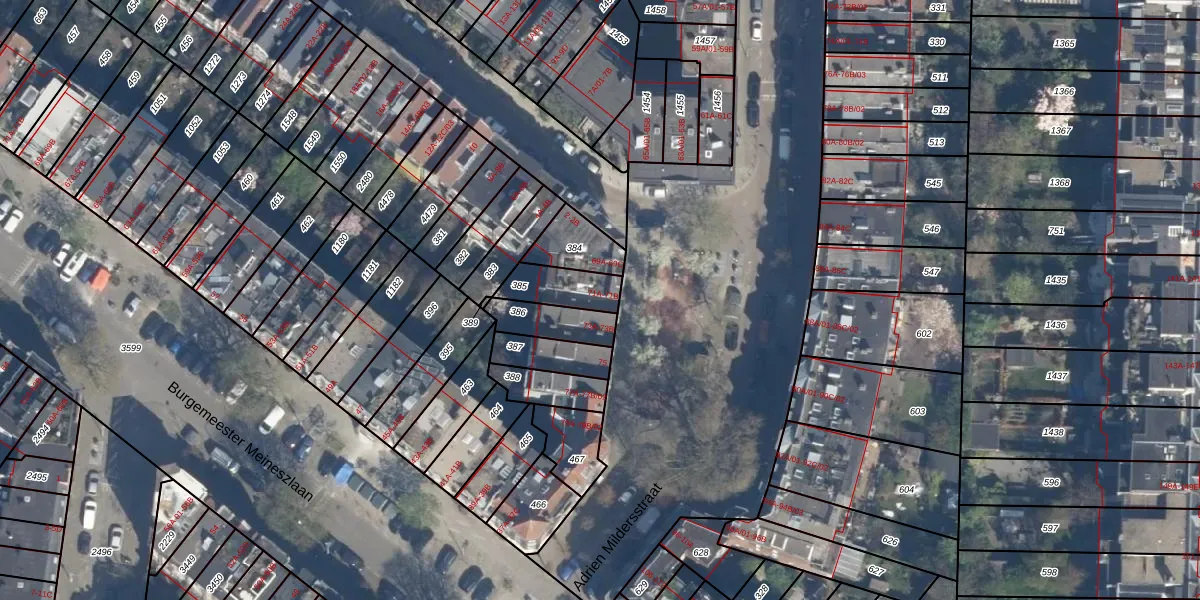 Adrien Mildersstraat 71-A is gelegen op kadastraal perceel DHV00I385. Deze kadastrale aanduiding is uniek en wordt gebruikt door het Kadaster om eigendomsrechten en andere zakelijke rechten vast te leggen. Het perceel maakt onderdeel uit van de kadastrale gemeente Delfshaven.