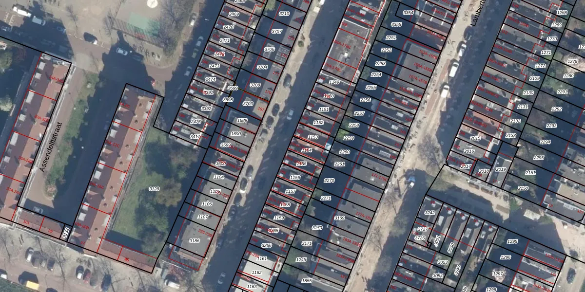 Het perceel waarop Aegidiusstraat 184-A staat heeft een oppervlakte van 65 m². Dit is een klein perceel. De perceeloppervlakte wordt geregistreerd door het Kadaster. Gedetailleerde informatie over de maten van dit perceel kunt u vinden in het rapport Kadastrale kaart met maatvoering van Aegidiusstraat 184-A.