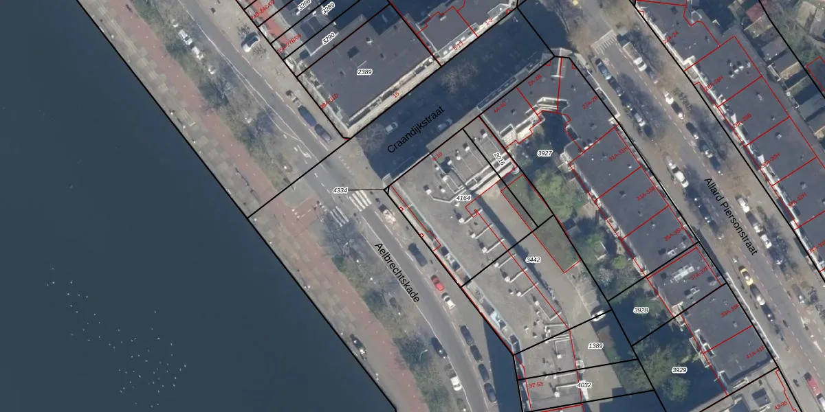 Aelbrechtskade 32 is gelegen op kadastraal perceel DHV00I4164. Deze kadastrale aanduiding is uniek en wordt gebruikt door het Kadaster om eigendomsrechten en andere zakelijke rechten vast te leggen. Het perceel maakt onderdeel uit van de kadastrale gemeente Delfshaven.