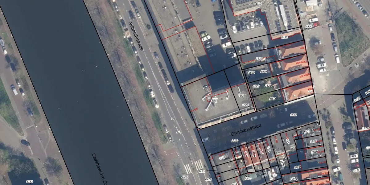 Het perceel waarop Aelbrechtskade 90 staat heeft een oppervlakte van 647 m². Dit is een groot perceel. De perceeloppervlakte wordt geregistreerd door het Kadaster. Gedetailleerde informatie over de maten van dit perceel kunt u vinden in het rapport Kadastrale kaart met maatvoering van Aelbrechtskade 90.