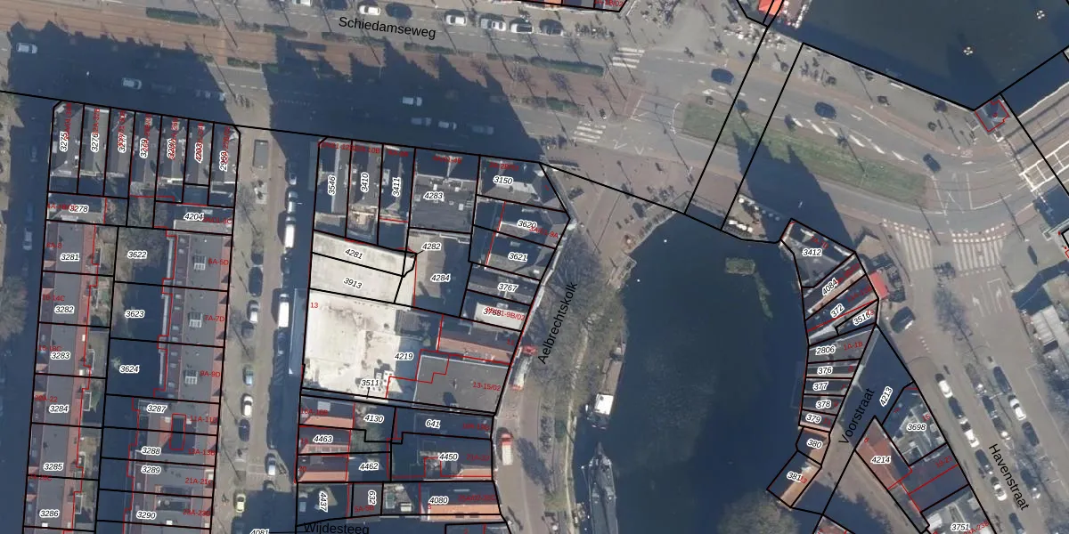 Aelbrechtskolk 5-A-01 is gelegen op kadastraal perceel DHV00A3621. Deze kadastrale aanduiding is uniek en wordt gebruikt door het Kadaster om eigendomsrechten en andere zakelijke rechten vast te leggen. Het perceel maakt onderdeel uit van de kadastrale gemeente Delfshaven.