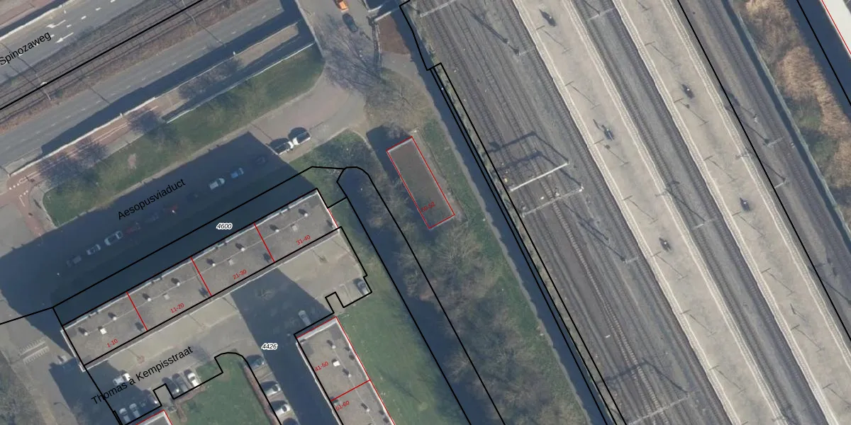 Het perceel waarop Aesopusviaduct 52 staat heeft een oppervlakte van 3,3 ha. Dit is een zeer groot perceel. De perceeloppervlakte wordt geregistreerd door het Kadaster. Gedetailleerde informatie over de maten van dit perceel kunt u vinden in het rapport Kadastrale kaart met maatvoering van Aesopusviaduct 52.