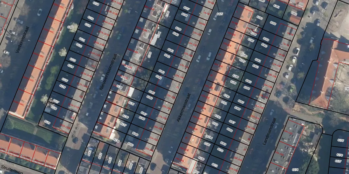 Het perceel waarop Akkermanstraat 21 staat heeft een oppervlakte van 121 m². Dit is een middelgroot perceel. De perceeloppervlakte wordt geregistreerd door het Kadaster. Gedetailleerde informatie over de maten van dit perceel kunt u vinden in het rapport Kadastrale kaart met maatvoering van Akkermanstraat 21.