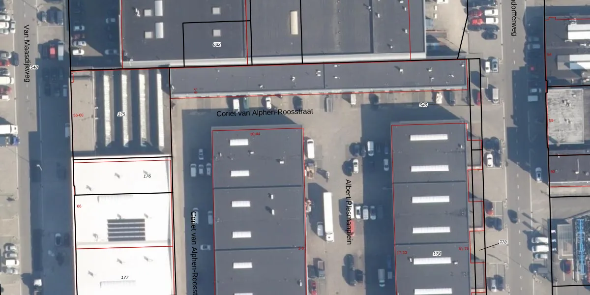Het adres is gelegen op perceel 174 in de sectie AN en de kadastrale gemeente Rotterdam. De kadastrale aanduiding is aldus RTD12-AN-174. Het perceel is kleiner dan gemiddeld in Rotterdam. Het perceel is 1,4 ha groot, terwijl het gemiddelde ligt op 4,6 ha. Het kleinste perceel in de kadastrale gemeente is 0 m² groot. De grootste perceeloppervlakte is 11,97 km². Op het perceel liggen in totaal 55 adressen. De huidige grenzen van het perceel zijn digitaal in de Basisregistratie Kadaster (BRK) geregistreerd op 30-11-2006.