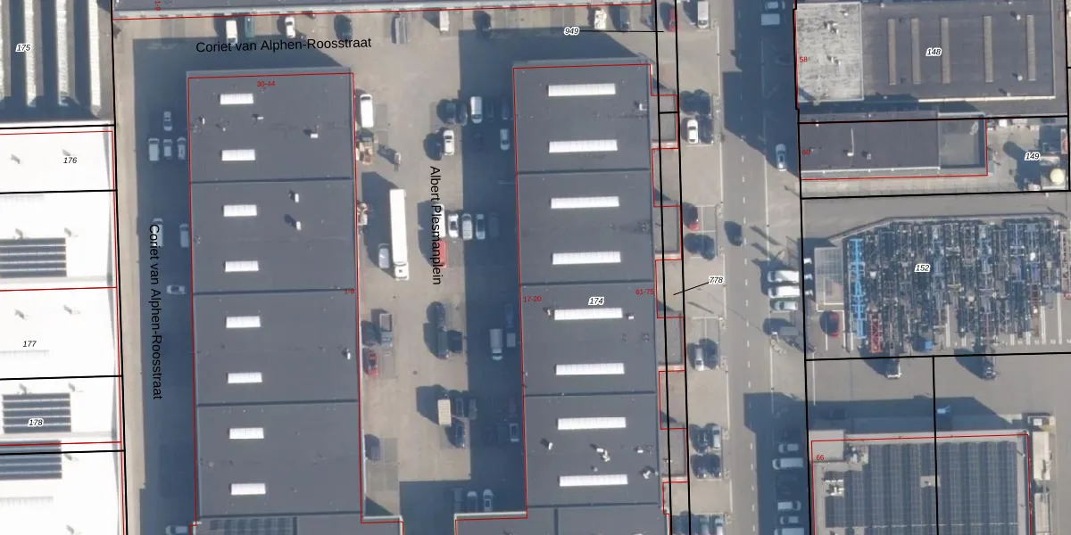 Het adres is gelegen op perceel 174 in de sectie AN en de kadastrale gemeente Rotterdam. De kadastrale aanduiding is aldus RTD12-AN-174. Het perceel is kleiner dan gemiddeld in Rotterdam. Het perceel is 1,4 ha groot, terwijl het gemiddelde ligt op 4,6 ha. De grootste perceeloppervlakte in de kadastrale gemeente is 11,97 km². De kleinste oppervlakte bedraagt 0 m². Er zijn 55 adressen aanwezig op het perceel. In de Basisregistratie Kadaster (BRK) werden de grenzen van het perceel geregistreerd op 30-11-2006.