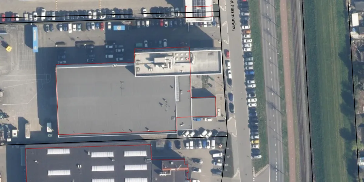 Het perceel waarop Albert Plesmanweg 49 staat heeft een oppervlakte van 8614 m². Dit is een zeer groot perceel. De perceeloppervlakte wordt geregistreerd door het Kadaster. Gedetailleerde informatie over de maten van dit perceel kunt u vinden in het rapport Kadastrale kaart met maatvoering van Albert Plesmanweg 49.