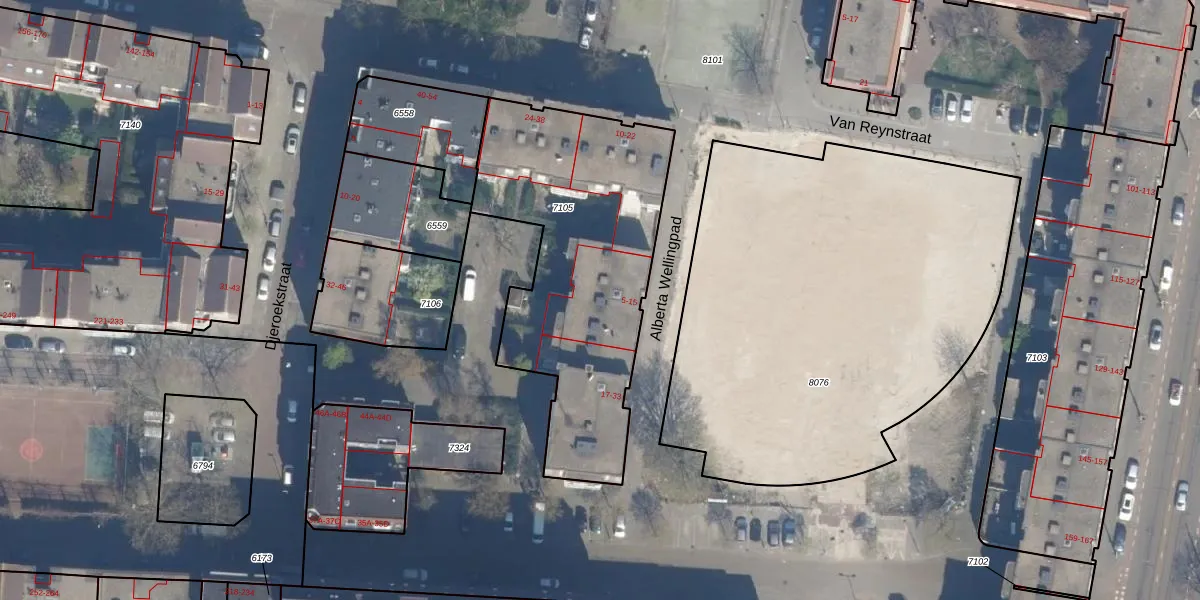 Alberta Wellingpad 5 is gelegen op kadastraal perceel RTD07R7105. Deze kadastrale aanduiding is uniek en wordt gebruikt door het Kadaster om eigendomsrechten en andere zakelijke rechten vast te leggen. Het perceel maakt onderdeel uit van de kadastrale gemeente Rotterdam.