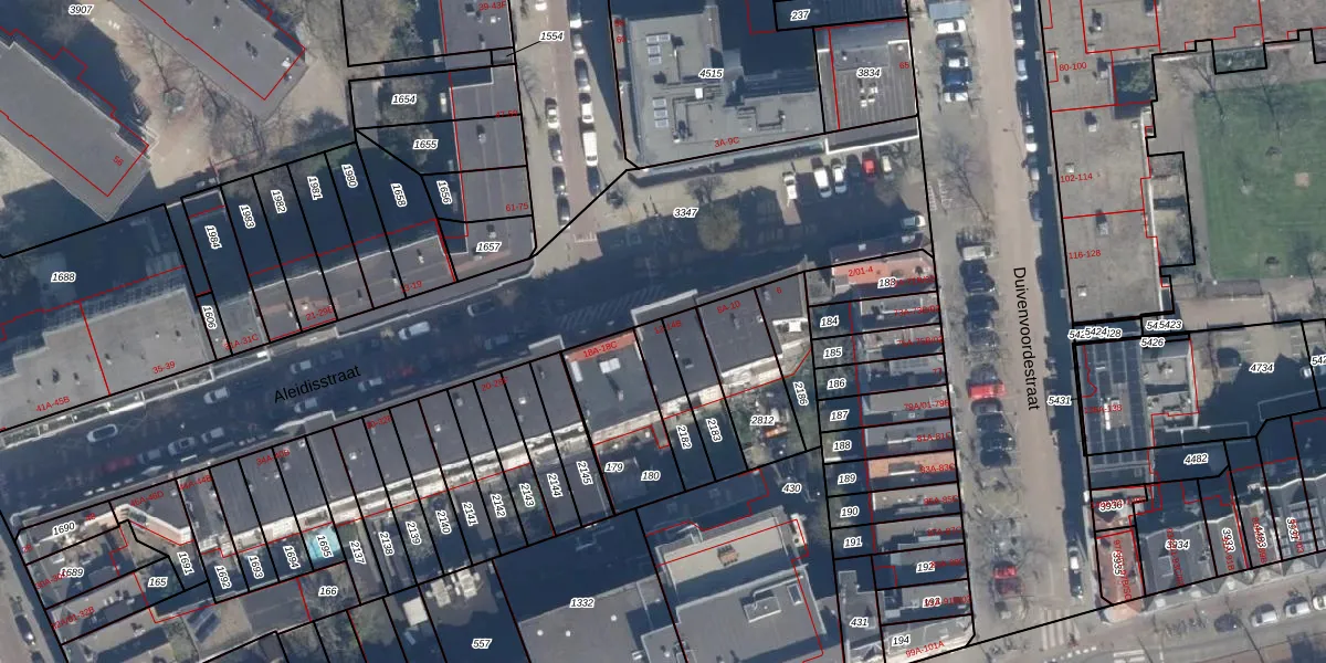 Aleidisstraat 14-B is gelegen op kadastraal perceel DHV00I2182. Deze kadastrale aanduiding is uniek en wordt gebruikt door het Kadaster om eigendomsrechten en andere zakelijke rechten vast te leggen. Het perceel maakt onderdeel uit van de kadastrale gemeente Delfshaven.