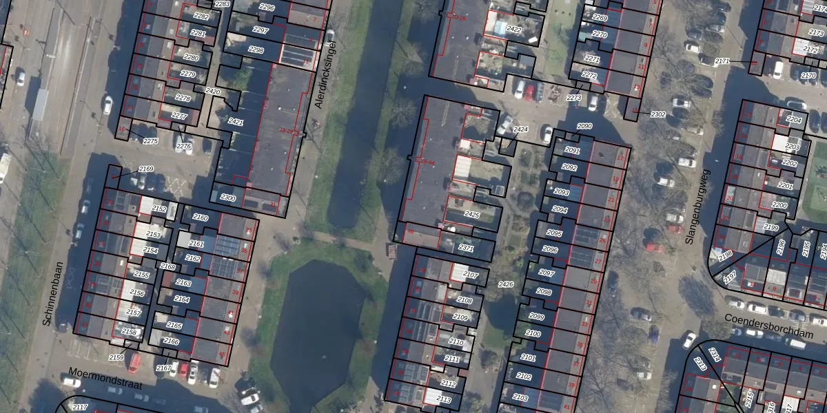 Het perceel waarop Alerdincksingel 32 staat heeft een oppervlakte van 635 m². Dit is een groot perceel. De perceeloppervlakte wordt geregistreerd door het Kadaster. Gedetailleerde informatie over de maten van dit perceel kunt u vinden in het rapport Kadastrale kaart met maatvoering van Alerdincksingel 32.