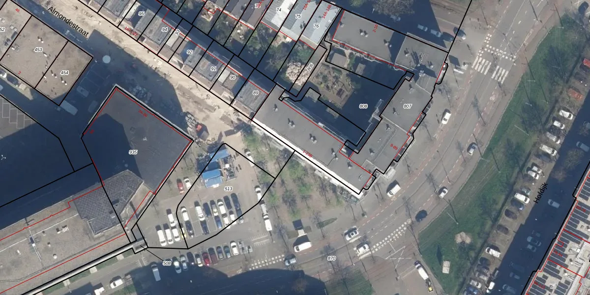 Almondestraat 13 is gelegen op kadastraal perceel RTD08AD807. Deze kadastrale aanduiding is uniek en wordt gebruikt door het Kadaster om eigendomsrechten en andere zakelijke rechten vast te leggen. Het perceel maakt onderdeel uit van de kadastrale gemeente Rotterdam.