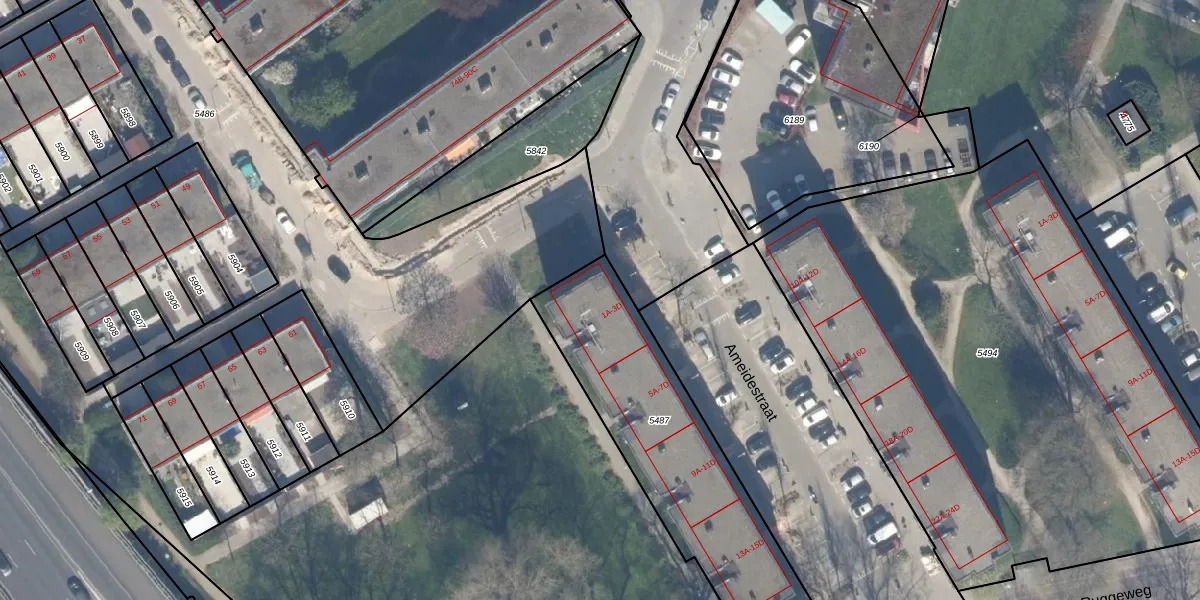 Ameidestraat 1-D is gelegen op kadastraal perceel OVS00C5487. Deze kadastrale aanduiding is uniek en wordt gebruikt door het Kadaster om eigendomsrechten en andere zakelijke rechten vast te leggen. Het perceel maakt onderdeel uit van de kadastrale gemeente Overschie.