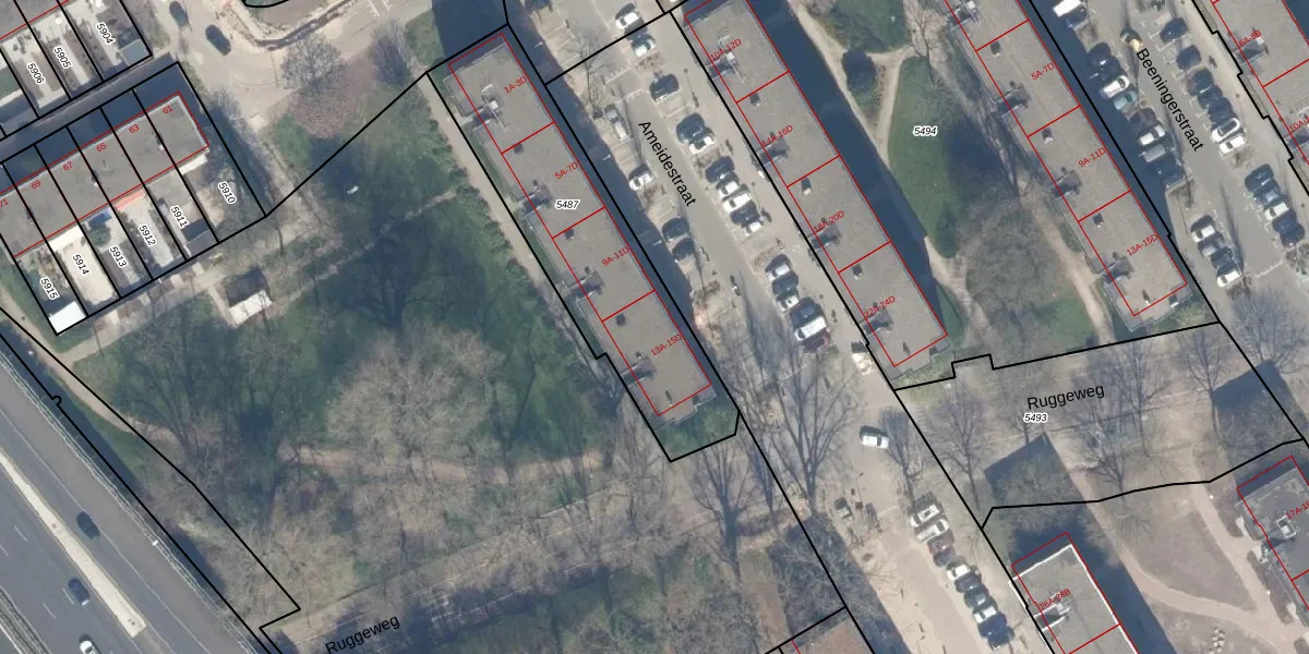 Ameidestraat 13-B is gelegen op kadastraal perceel OVS00C5487. Deze kadastrale aanduiding is uniek en wordt gebruikt door het Kadaster om eigendomsrechten en andere zakelijke rechten vast te leggen. Het perceel maakt onderdeel uit van de kadastrale gemeente Overschie.