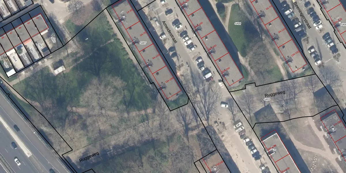 Ameidestraat 15-B is gelegen op kadastraal perceel OVS00C5487. Deze kadastrale aanduiding is uniek en wordt gebruikt door het Kadaster om eigendomsrechten en andere zakelijke rechten vast te leggen. Het perceel maakt onderdeel uit van de kadastrale gemeente Overschie.