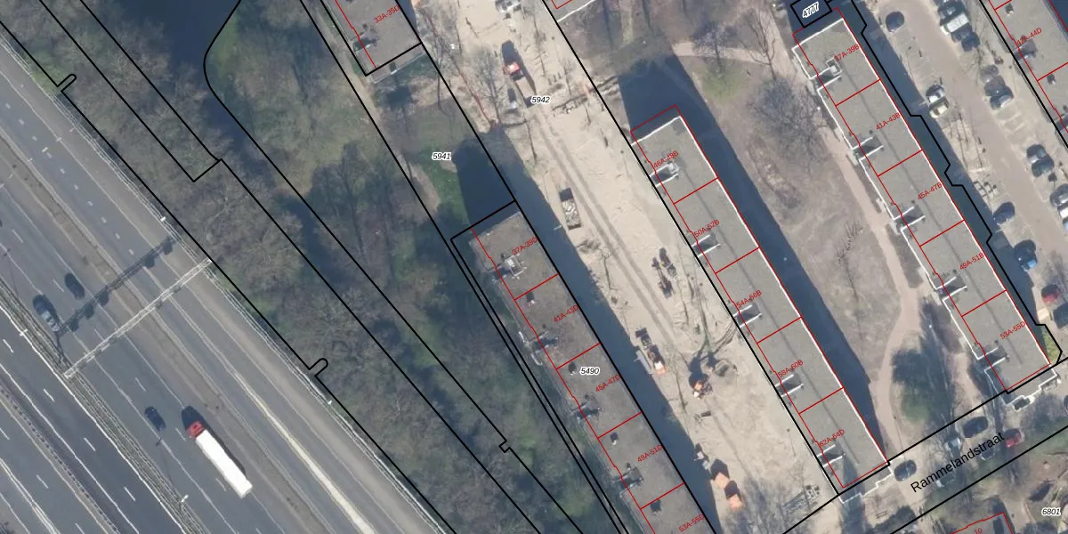 Het perceel waarop het adres ligt is OVS00-C-5490. De afkorting 'OVS00' staat voor kadastrale gemeente Overschie. Het perceel is 1140 m² groot. Dat is kleiner dan de gemiddelde perceeloppervlakte in Overschie, dat op 2516,39 m² ligt. De grootste perceeloppervlakte in de kadastrale gemeente is 80,2 ha. De kleinste oppervlakte bedraagt 0 m². Op het perceel zijn 40 adressen aanwezig. De laatste wijziging in het de Basisregistratie Kadaster (BRK) was op 25-11-2002.