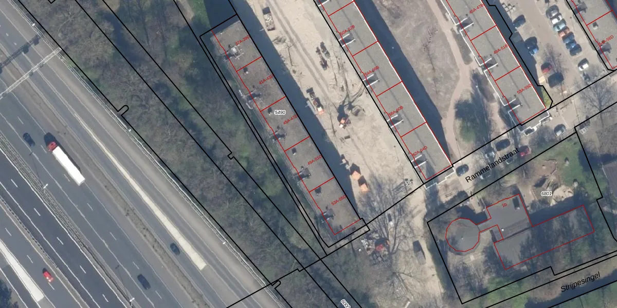 Het perceel waarop Ameidestraat 49-D staat heeft een oppervlakte van 1140 m². Dit is een zeer groot perceel. De perceeloppervlakte wordt geregistreerd door het Kadaster. Gedetailleerde informatie over de maten van dit perceel kunt u vinden in het rapport Kadastrale kaart met maatvoering van Ameidestraat 49-D.