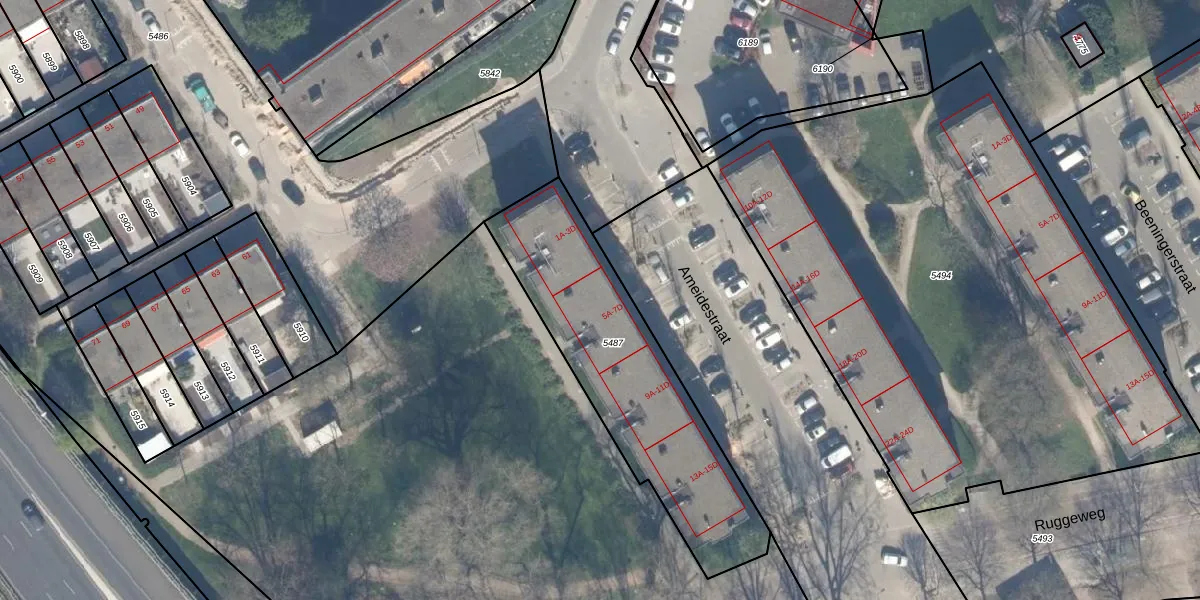 Ameidestraat 5-D is gelegen op kadastraal perceel OVS00C5487. Deze kadastrale aanduiding is uniek en wordt gebruikt door het Kadaster om eigendomsrechten en andere zakelijke rechten vast te leggen. Het perceel maakt onderdeel uit van de kadastrale gemeente Overschie.