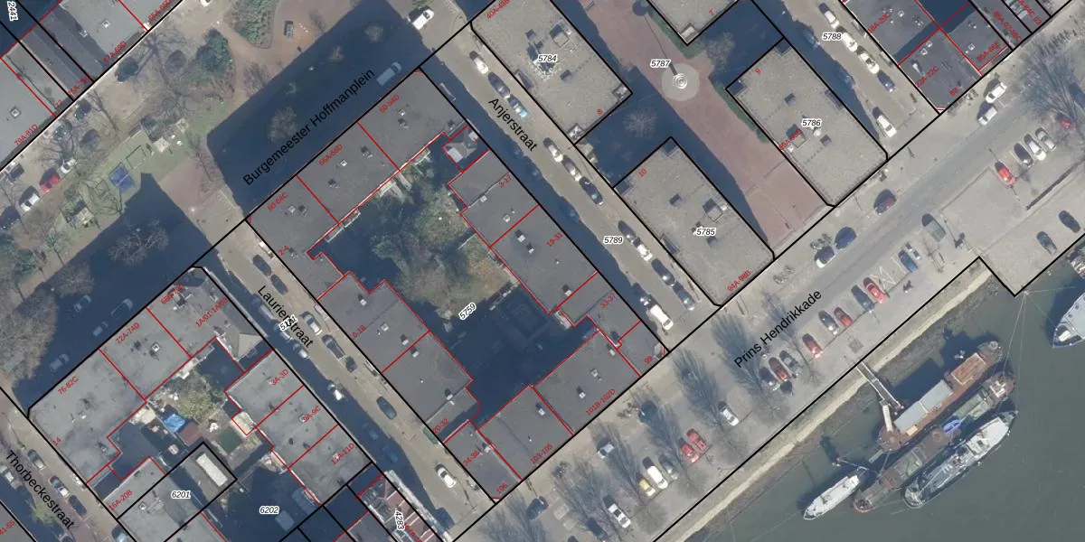 Het perceel waarop het adres ligt is RTD05-Q-5759. De afkorting 'RTD05' staat voor kadastrale gemeente Rotterdam. De gemiddelde perceeloppervlakte in de kadastrale gemeente Rotterdam is 1401,79 m². Dit perceel is met zijn 2968 m² dus groter dan gemiddeld. Het grootste perceel in de kadastrale gemeente is 36,8 ha. Het kleinste perceel heeft een oppervlakte van 0 m². Er zijn 77 adressen aanwezig op het perceel. In de Basisregistratie Kadaster (BRK) werden de grenzen van het perceel geregistreerd op 20-10-2006.