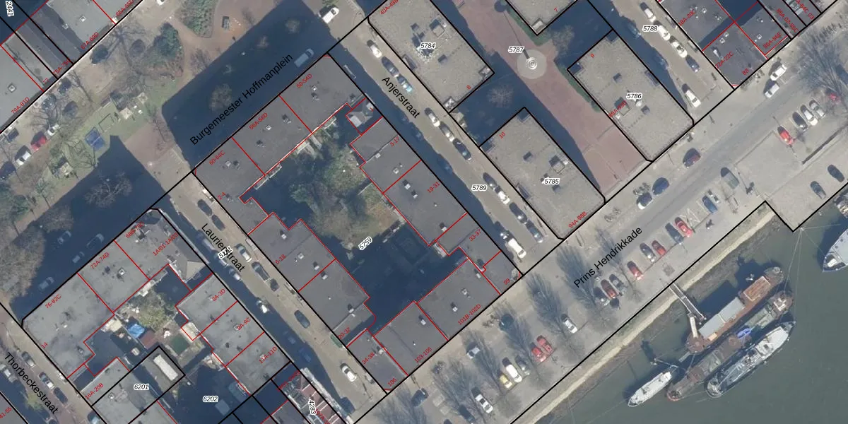 Het perceel waarop het adres ligt is RTD05-Q-5759. De afkorting 'RTD05' staat voor kadastrale gemeente Rotterdam. De gemiddelde perceeloppervlakte in de kadastrale gemeente Rotterdam is 1401,53 m². Dit perceel is met zijn 2968 m² dus groter dan gemiddeld. Het grootste perceel in de kadastrale gemeente is 36,8 ha. Het kleinste perceel heeft een oppervlakte van 0 m². Er zijn 77 adressen aanwezig op het perceel. De huidige grenzen van het perceel zijn digitaal in de Basisregistratie Kadaster (BRK) geregistreerd op 20-10-2006.