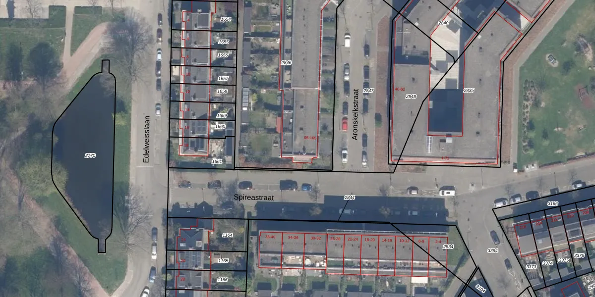 Het perceel waarop Aronskelkstraat 165 staat heeft een oppervlakte van 2458 m². Dit is een zeer groot perceel. De perceeloppervlakte wordt geregistreerd door het Kadaster. Gedetailleerde informatie over de maten van dit perceel kunt u vinden in het rapport Kadastrale kaart met maatvoering van Aronskelkstraat 165.