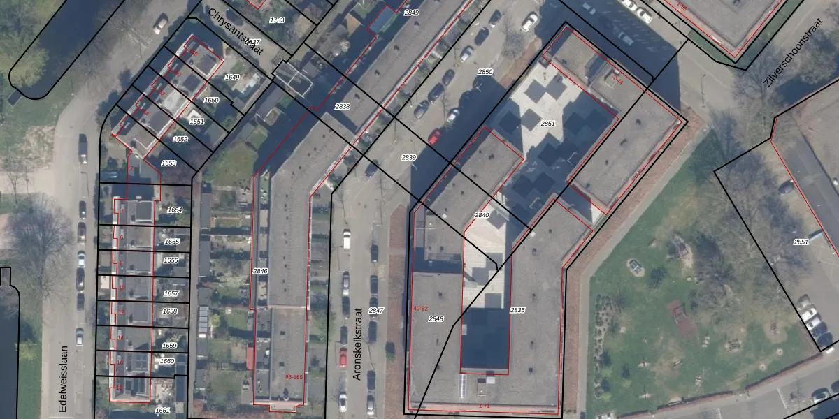 Het perceel waarop Aronskelkstraat 54 staat heeft een oppervlakte van 573 m². Dit is een groot perceel. De perceeloppervlakte wordt geregistreerd door het Kadaster. Gedetailleerde informatie over de maten van dit perceel kunt u vinden in het rapport Kadastrale kaart met maatvoering van Aronskelkstraat 54.