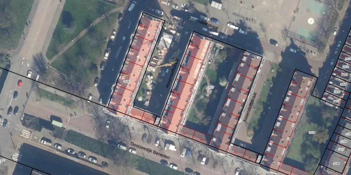 Het perceel waarop Assendelftstraat 46-B staat heeft een oppervlakte van 2505 m². Dit is een zeer groot perceel. De perceeloppervlakte wordt geregistreerd door het Kadaster. Gedetailleerde informatie over de maten van dit perceel kunt u vinden in het rapport Kadastrale kaart met maatvoering van Assendelftstraat 46-B.