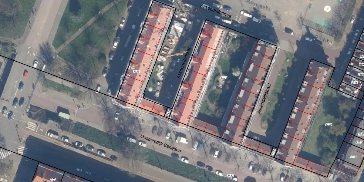 Assendelftstraat 48-A is gelegen op kadastraal perceel KLG00F3127. Deze kadastrale aanduiding is uniek en wordt gebruikt door het Kadaster om eigendomsrechten en andere zakelijke rechten vast te leggen. Het perceel maakt onderdeel uit van de kadastrale gemeente Kralingen.