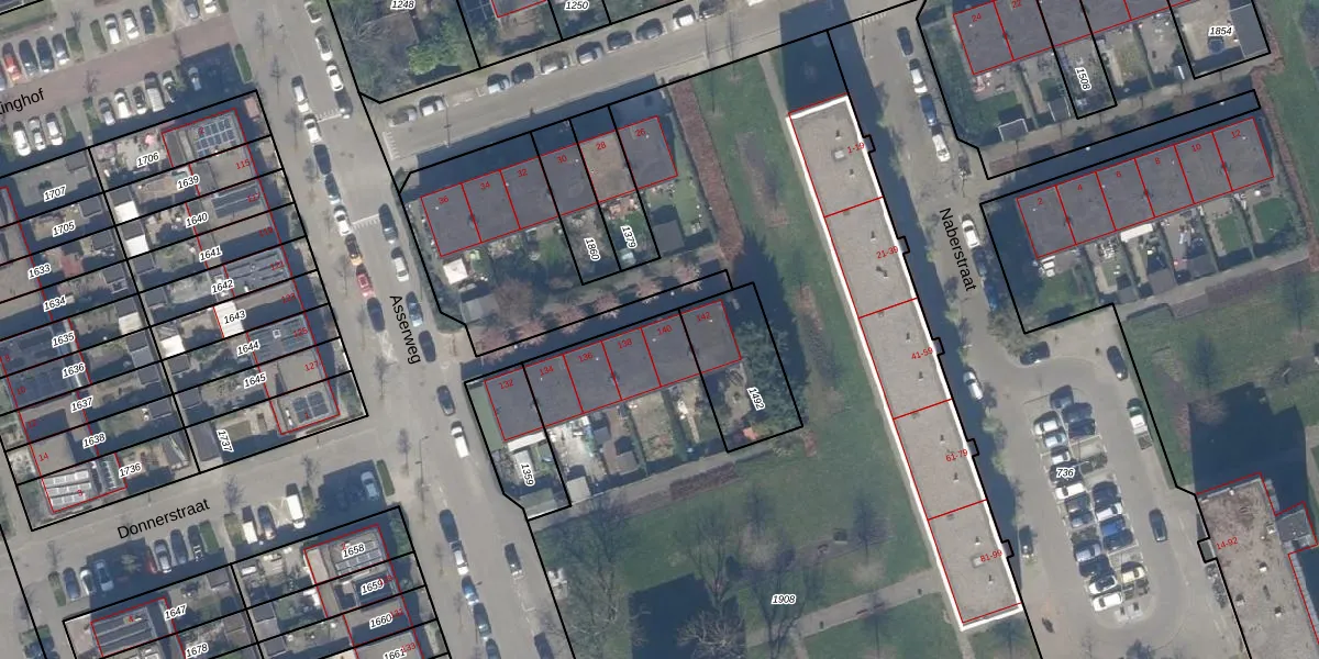Het perceel waarop Asserweg 140 staat heeft een oppervlakte van 9120 m². Dit is een zeer groot perceel. De perceeloppervlakte wordt geregistreerd door het Kadaster. Gedetailleerde informatie over de maten van dit perceel kunt u vinden in het rapport Kadastrale kaart met maatvoering van Asserweg 140.