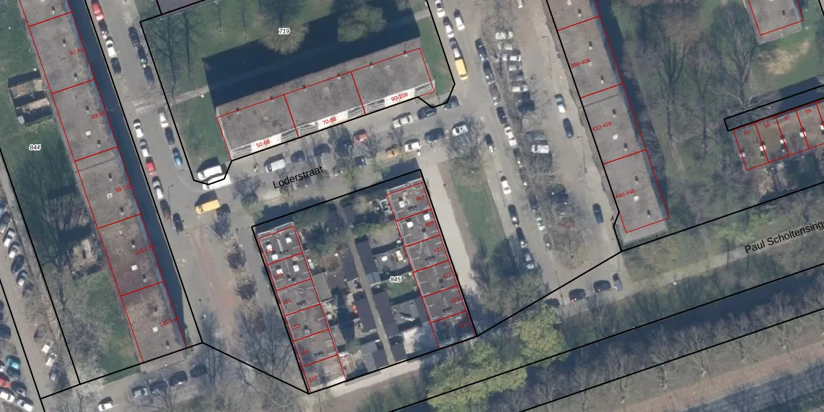 Het perceel waarop het adres ligt is SBK01-D-845. De afkorting 'SBK01' staat voor kadastrale gemeente Schiebroek. De oppervlakte van het perceel is 1836 m². Dat is groter dan gemiddeld in Schiebroek, waar de gemiddelde perceeloppervlakte op 1440,41 m² ligt. De grootste perceeloppervlakte in de kadastrale gemeente is 36,7 ha. De kleinste oppervlakte bedraagt 0 m². Op het perceel zijn 12 adressen aanwezig. De laatste wijziging in het de Basisregistratie Kadaster (BRK) was op 03-07-2003.