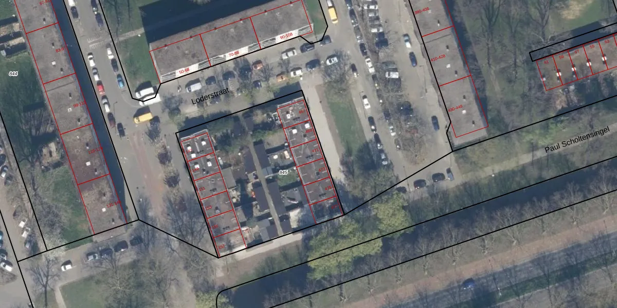 Het perceel waarop het adres ligt is SBK01-D-845. De afkorting 'SBK01' staat voor kadastrale gemeente Schiebroek. De oppervlakte van het perceel is 1836 m². Dat is groter dan gemiddeld in Schiebroek, waar de gemiddelde perceeloppervlakte op 1440,41 m² ligt. De grootste perceeloppervlakte in de kadastrale gemeente is 36,7 ha. De kleinste oppervlakte bedraagt 0 m². Op het perceel liggen in totaal 12 adressen. De huidige grenzen van het perceel zijn digitaal in de Basisregistratie Kadaster (BRK) geregistreerd op 03-07-2003.