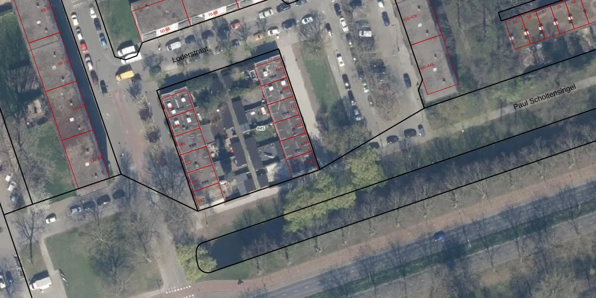 Het perceel waarop het adres ligt is SBK01-D-845. De afkorting 'SBK01' staat voor kadastrale gemeente Schiebroek. De oppervlakte van het perceel is 1836 m². Dat is groter dan gemiddeld in Schiebroek, waar de gemiddelde perceeloppervlakte op 1440,41 m² ligt. De grootste perceeloppervlakte in de kadastrale gemeente is 36,7 ha. De kleinste oppervlakte bedraagt 0 m². Op het perceel liggen in totaal 12 adressen. In de Basisregistratie Kadaster (BRK) werden de grenzen van het perceel geregistreerd op 03-07-2003.