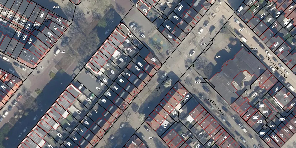 Asterstraat 43-B is gelegen op kadastraal perceel CLS00G5974. Deze kadastrale aanduiding is uniek en wordt gebruikt door het Kadaster om eigendomsrechten en andere zakelijke rechten vast te leggen. Het perceel maakt onderdeel uit van de kadastrale gemeente Charlois.